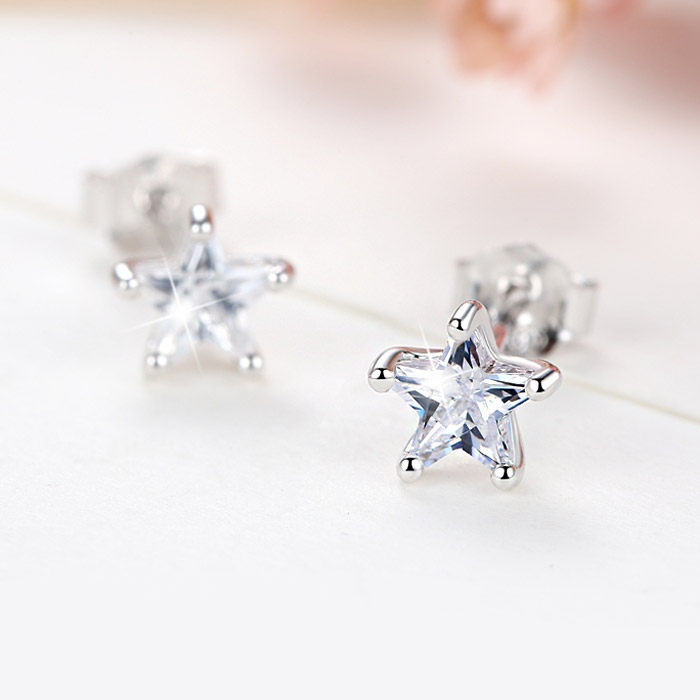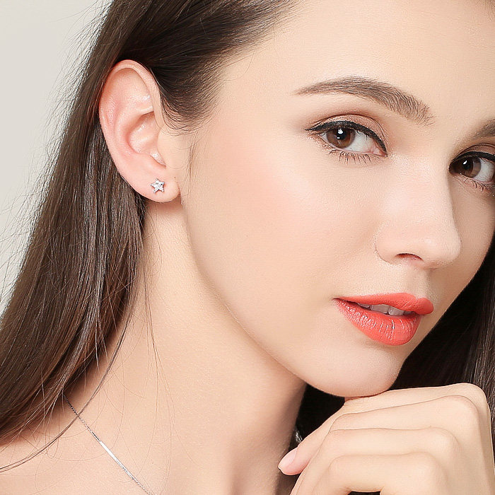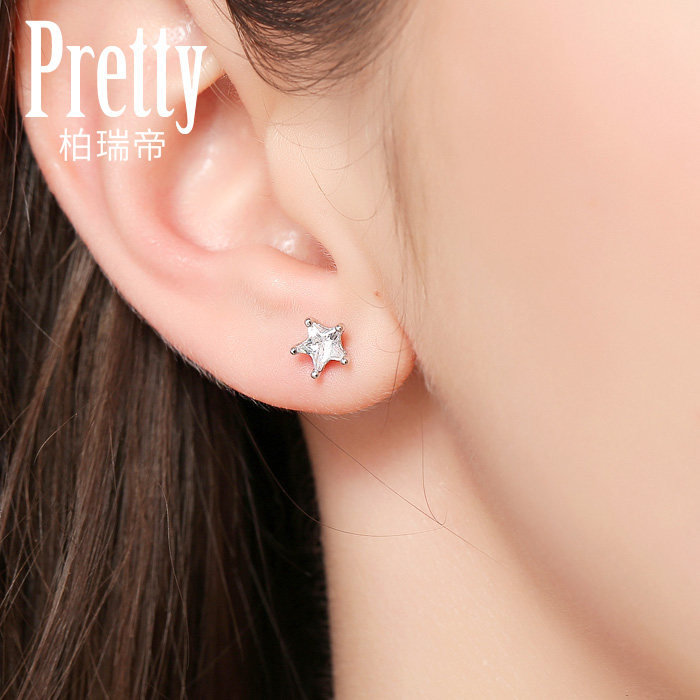 Pure Silver Earrings Female Earrings Mini Small Earbone Nail Stars Synthetic Crystal Mesh Red Korea Brief Ear Ornaments Small