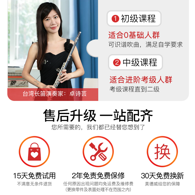 Virtue Wee pure silver Long flute Professional playing 17 holes open and closed Dual-purpose Children's beginner test Flute Instruments