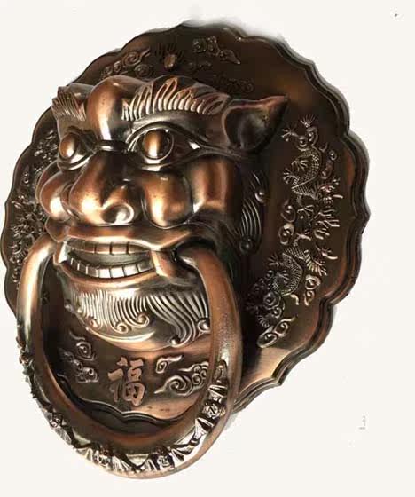 Bronze lion head handle Beast head knocker Chinese antique bronze lion head Tiger head Kirin animal head