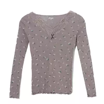 Top Piperi autumn clothes sanitary pants women's pure cotton suit thin lace V-neck body heating clothes women's bottoming cotton sweater