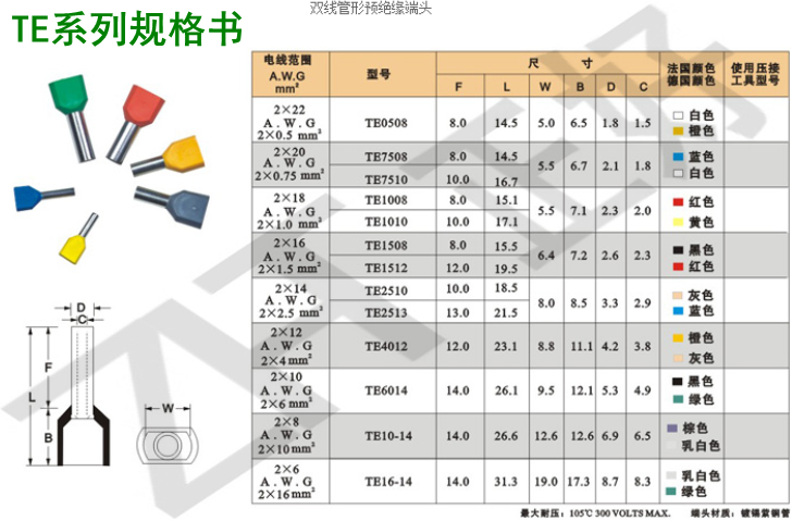 Red copper TE1008 Two-wire tubular pre-insulated cold pressure wiring end head needle shaped tubular wire nose 1000-Taobao