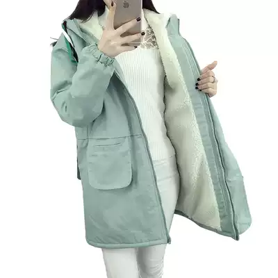 Plus velvet thick coat girl autumn and winter clothes 2021 new junior high school students Korean version of the long version of Lamb hair guard clothes