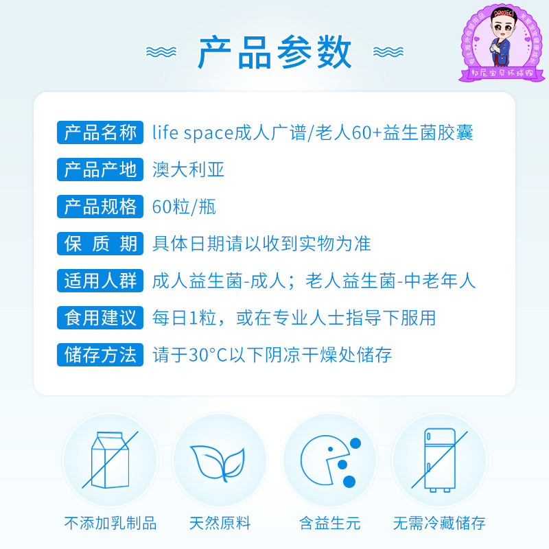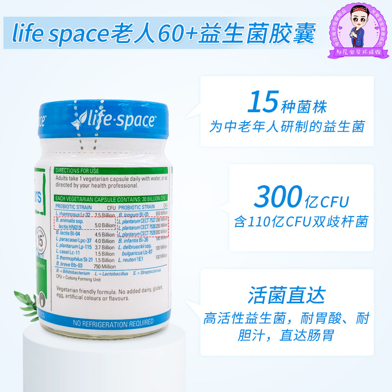 Australia imported Life Space adult probiotic capsule gastrointestinal conditioning live bacteria 60 elderly 60 capsules