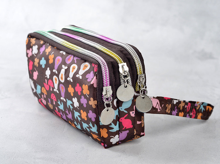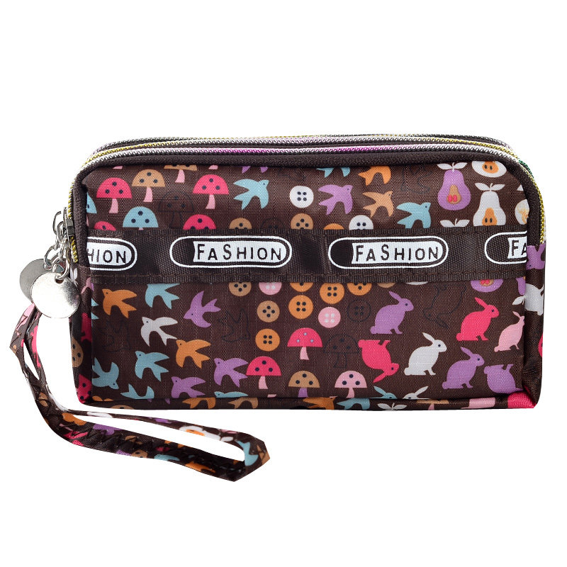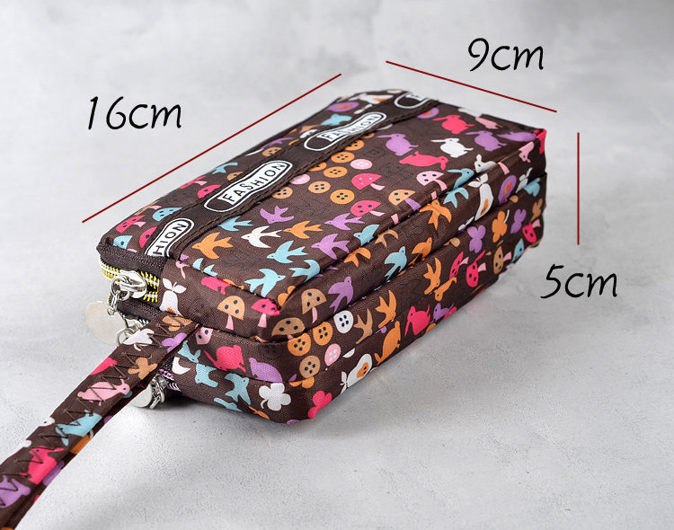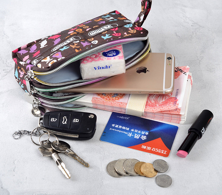 Three zipper fabric wrist clutch women's fashion all-match cartoon student bag long version change key mobile phone bag