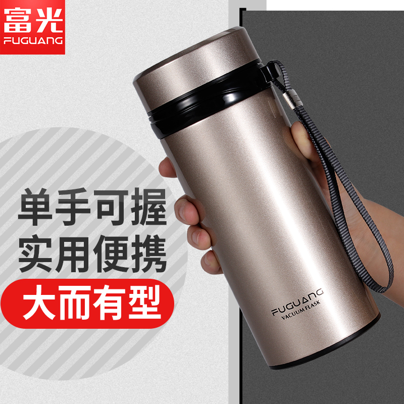FU Guangguang capacity stainless steel thermos cup FOR men AND women large filter vacuum cup with lid leak-proof 680ML straight cup