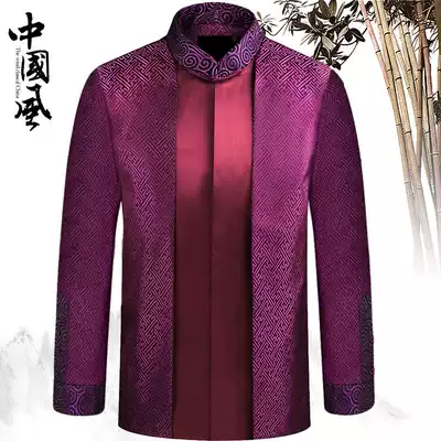 Chinese style men's Tang Suit Silk shawl jacket Chinese Tunic Banquet dress Stand-up collar long-sleeved top
