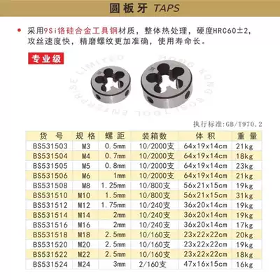 Persian round plate tooth sleeve external thread tool tapping outer wire hand with metric die wrench