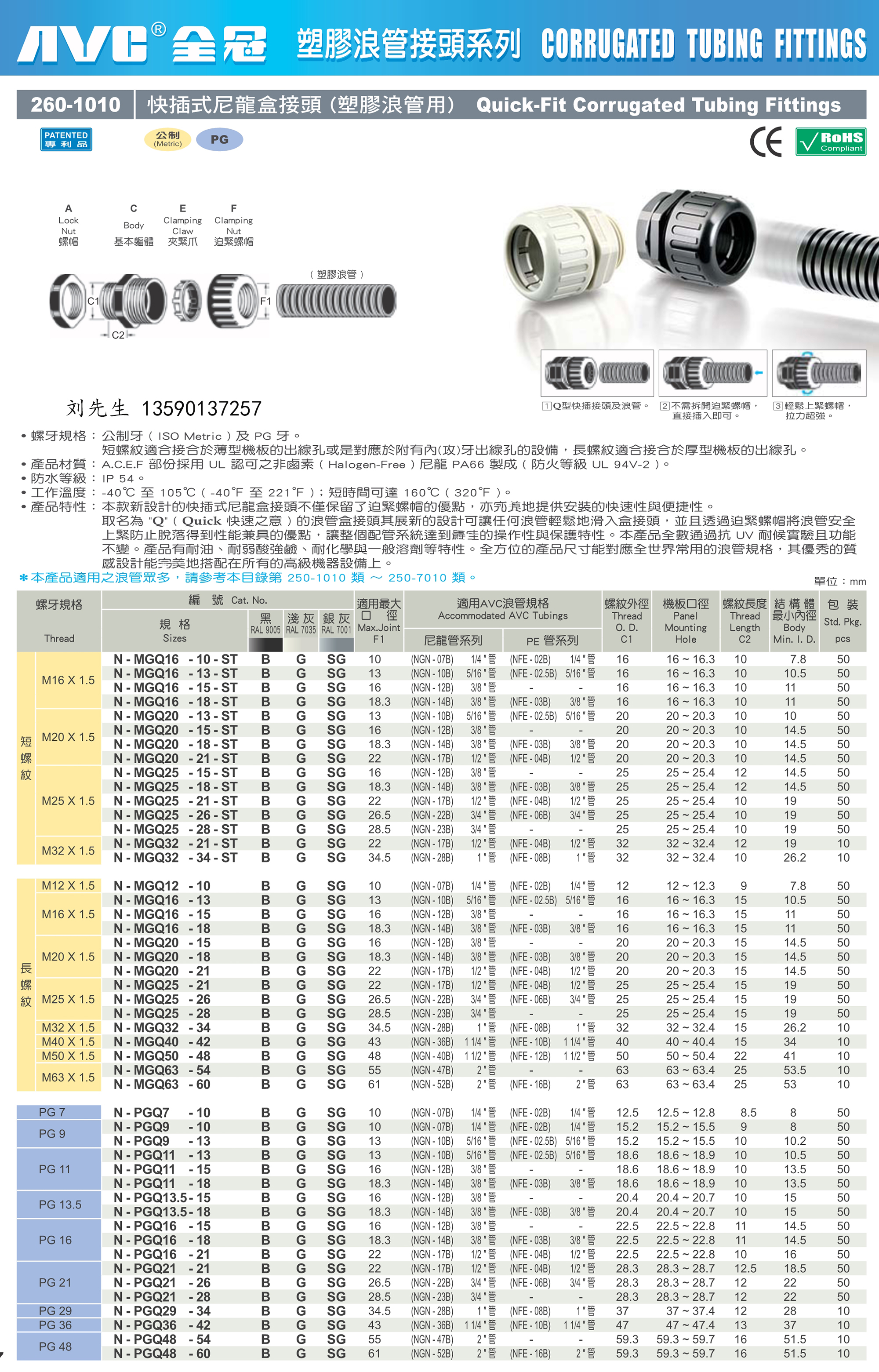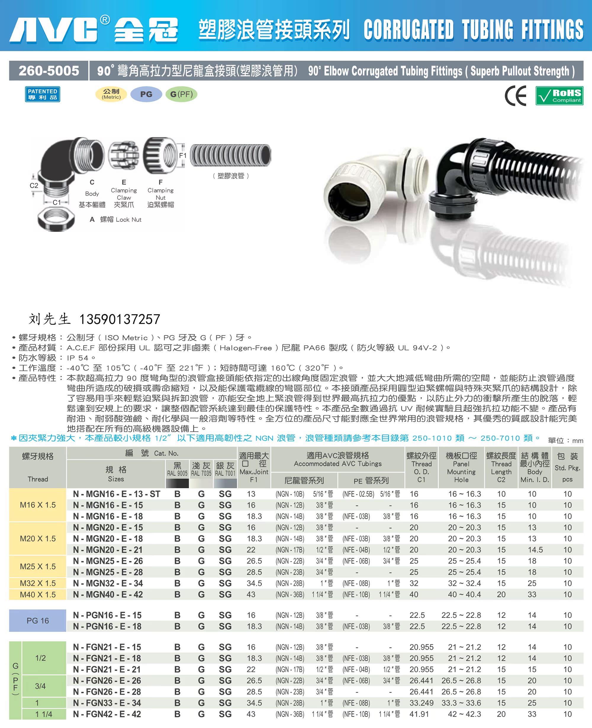 N-MGN20-E-21B Taiwan full crown original Nylon Box Joint Wave Pipe Union Bellows Joint