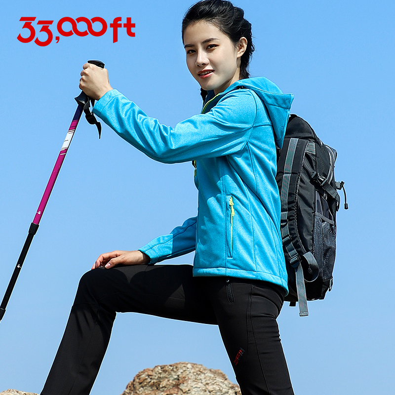33000ft outdoor clothing soft shell women's autumn and winter new hooded windproof and waterproof breathable thin cardigan jacket