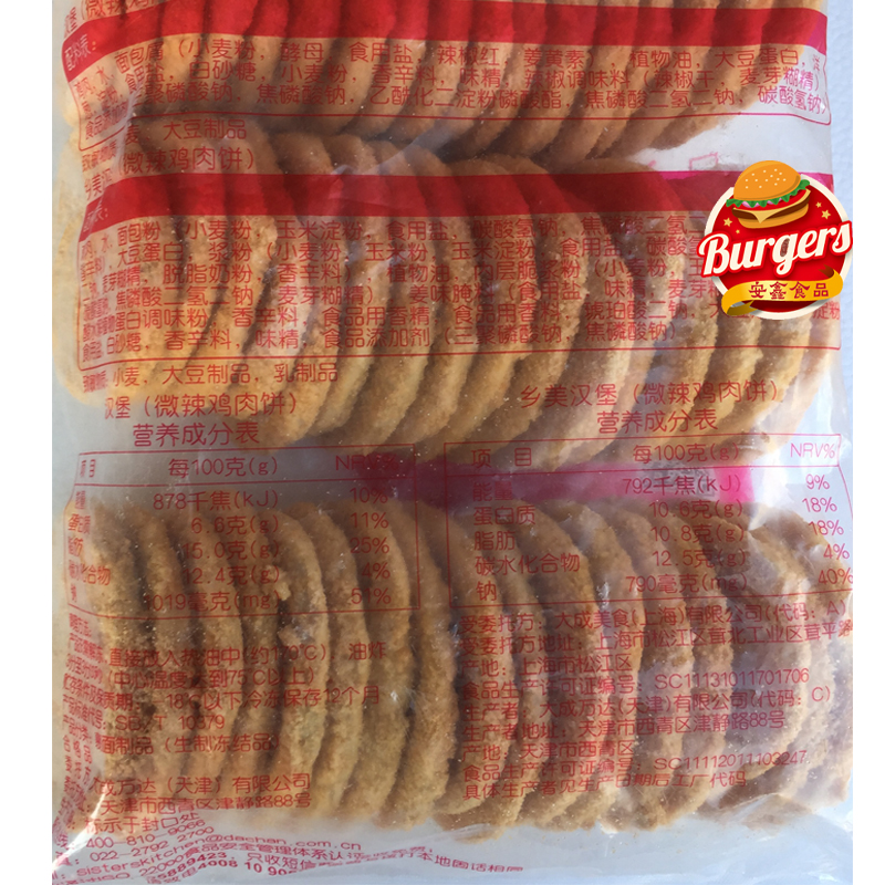 Dacheng Sister Kitchen Big Burger wheat chicken snack snack hamburger special semi-finished product free