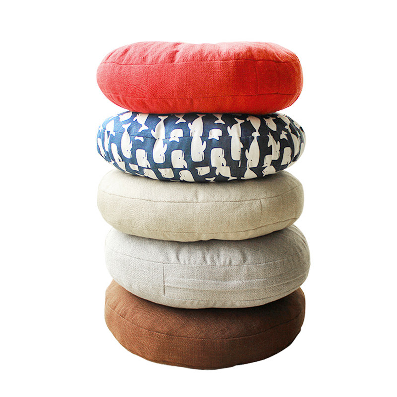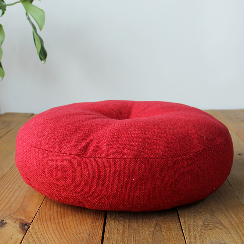 Cotton and linen Japanese-style solid color round thickened dining chair cushion Removable and washable futon cushion Increase meditation worship Buddha meditation cloth pad