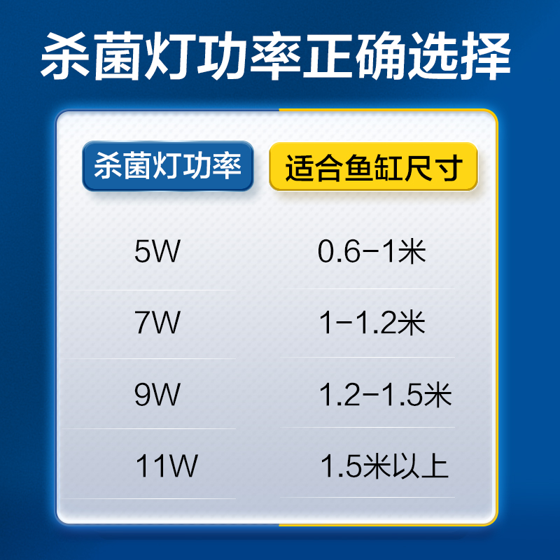 Explosion-proof sterilization lamp 5W, suitable fish tank (0.6-1 meter) explosion-proof sterilization lamp 7W, suitable fish tank (1-1.2 meters) explosion-proof sterilization lamp 9W, suitable fish tank (1.2-1.5 meters) explosion-proof sterilization lamp 11W, suitable fish tank (1.5 meters or more)