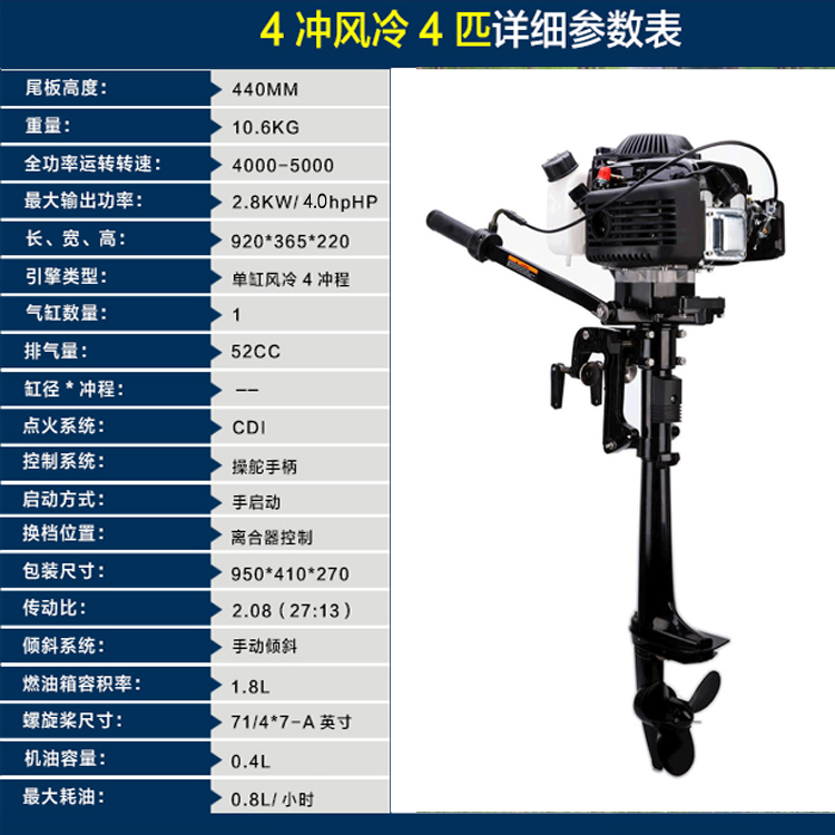Rubber boat assault boat 4 horsepower air-cooled four-stroke motor propeller tail wall mounted air-conditioning outboard engine - Taobao