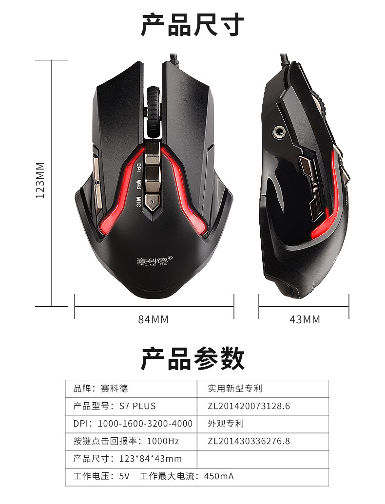 Sykod s7 Dazzling Lol Electric Race Game Slip Rat Notebook Computer Luminous Wired Slip Rat With Speaker