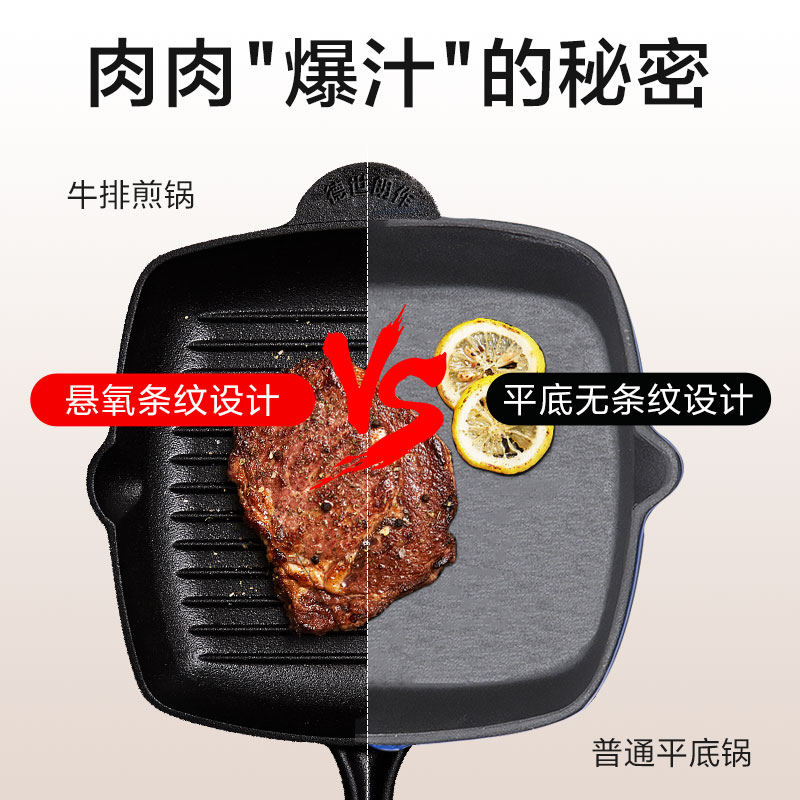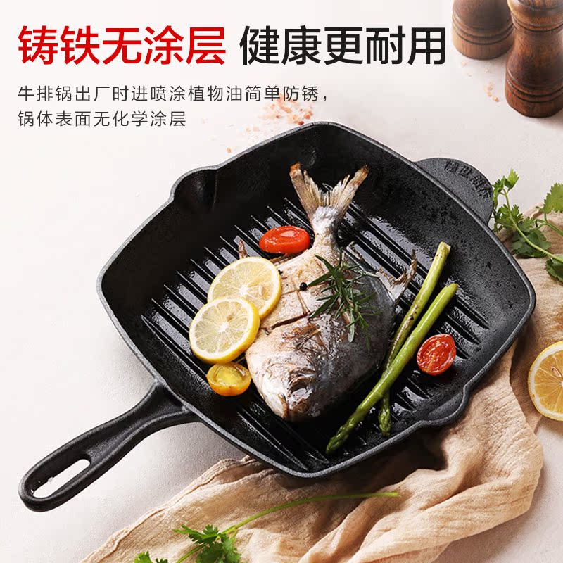 Deserlang Steak Pan Frying Pan Fried Steak Exclusive Steak Stripe Cast-iron Pan Flat Bottom Boiler Home no-coated induction cookers