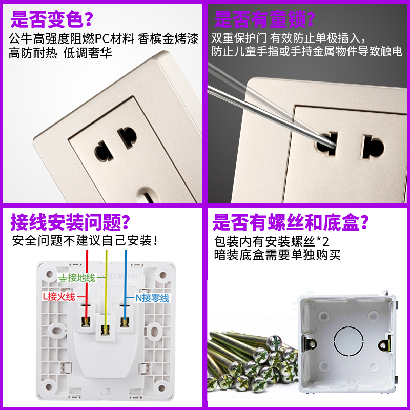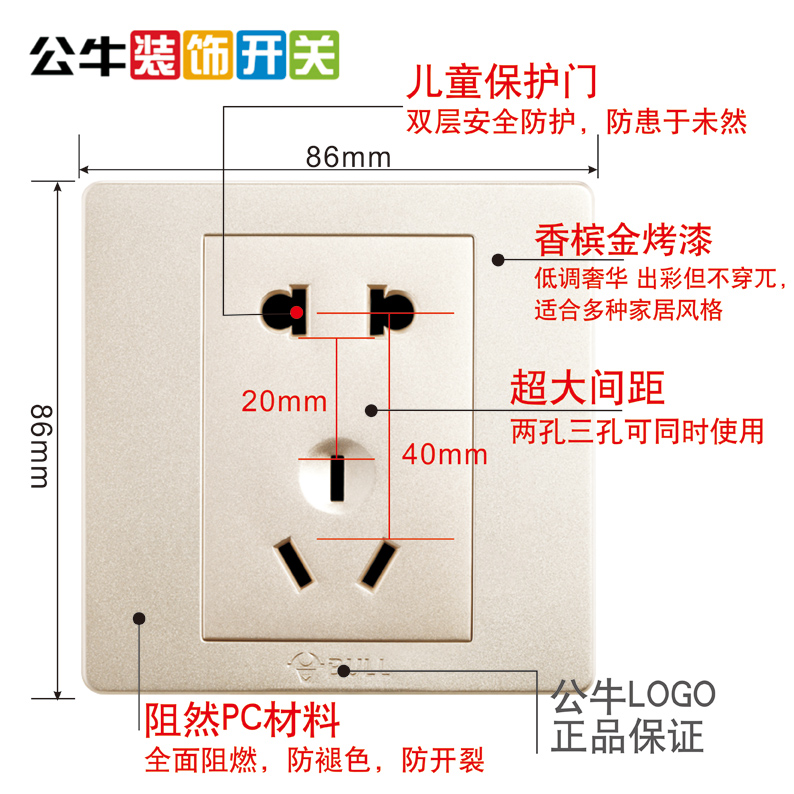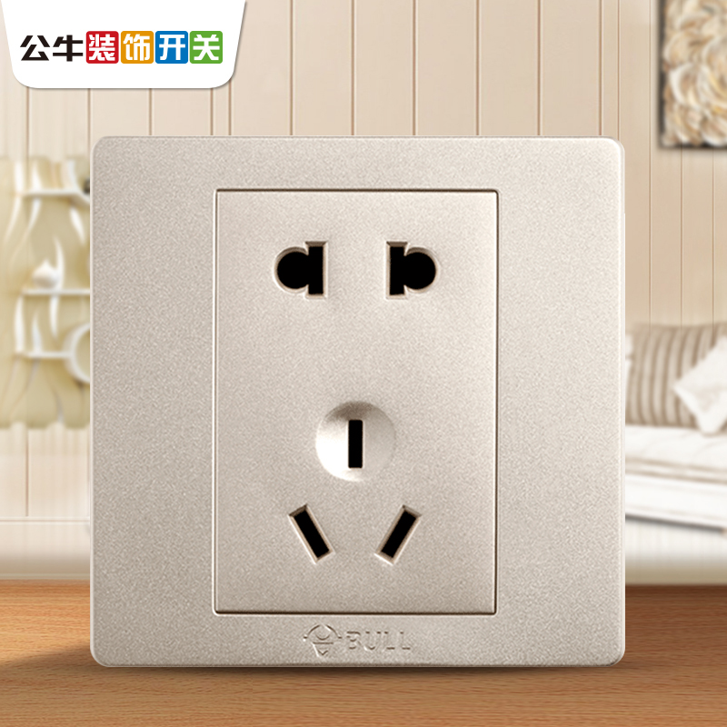 Bull switch socket power supply wall decorated 86 type 2 three - plug 5 hole five - hole socket panel household champagne gold