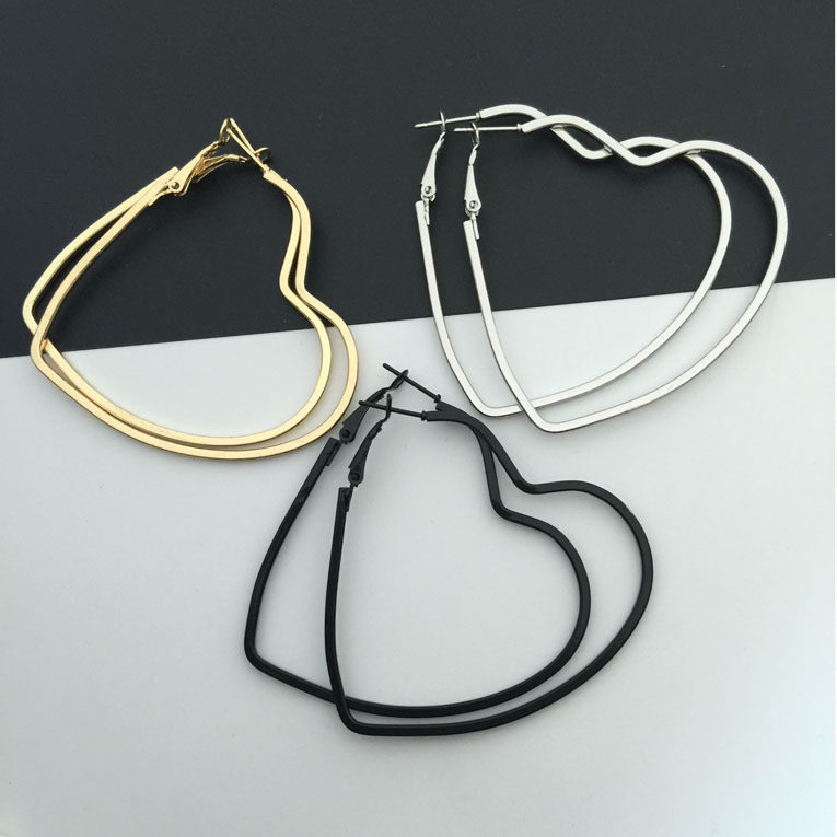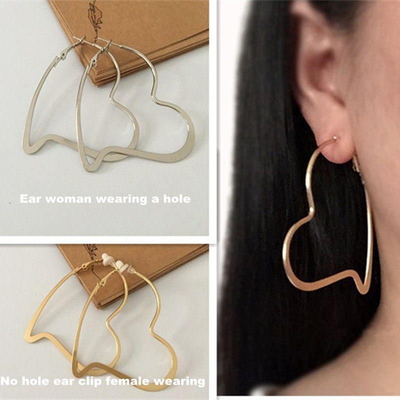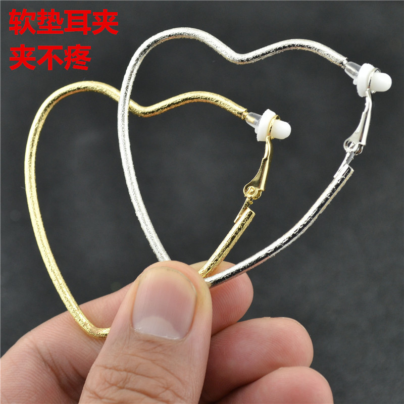 Korean style earrings fashion atmosphere square line heart shape Europe and the United States large circle earrings no pierced ear clips no pierced ears female