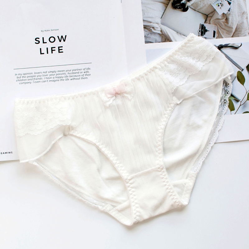 Sexy Japanese Panties Ladies Triangle Pants Pure Cotton Middle Waist Japan Cute Girl Lace Cotton Side Cotton Fabric Breathable