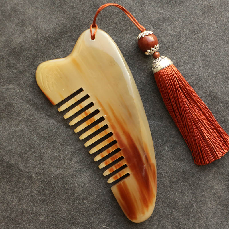 Natural white yak horn scraping head massage comb Horn comb wide tooth comb Coarse tooth comb Scraping plate Scraping plate