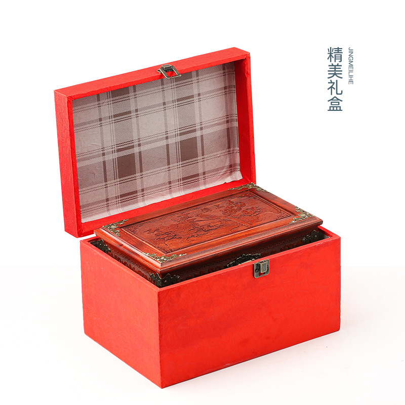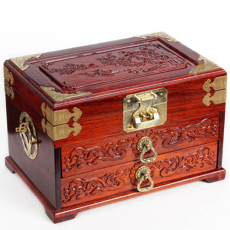 Mahogany Jewelry Box Large Retro Chinese Style Wedding Jewelry Box Solid Wood Hand Jewelry Storage Box with Lock