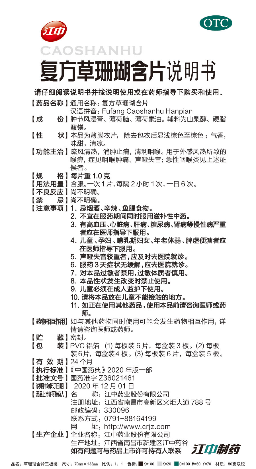 Jiangzhong compound herbal coral lozenge 24 slices of oral pharynx dry acute pharyngitis larynx fever and detumescence sound hoarse