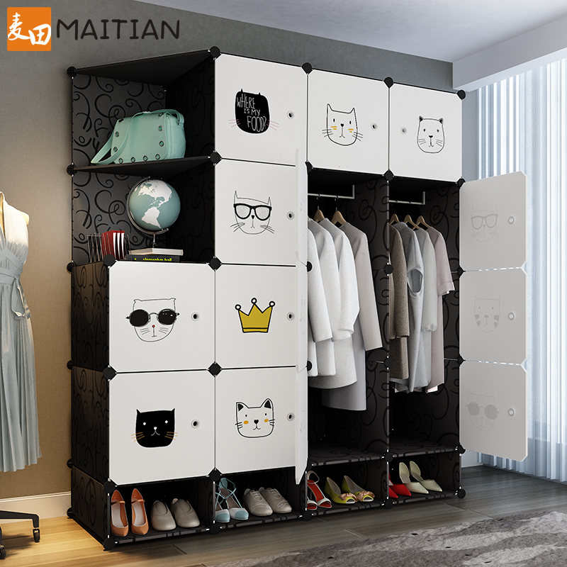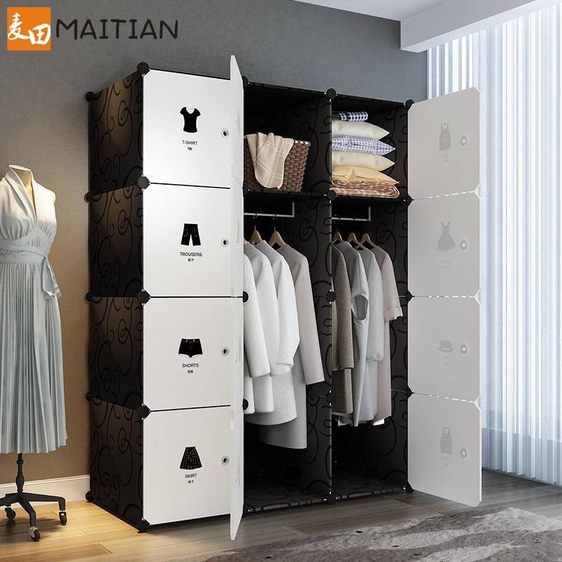 Simple wardrobe cloth assembly thickened reinforced children's storage storage cabinet Home bedroom hanging folding fabric wardrobe