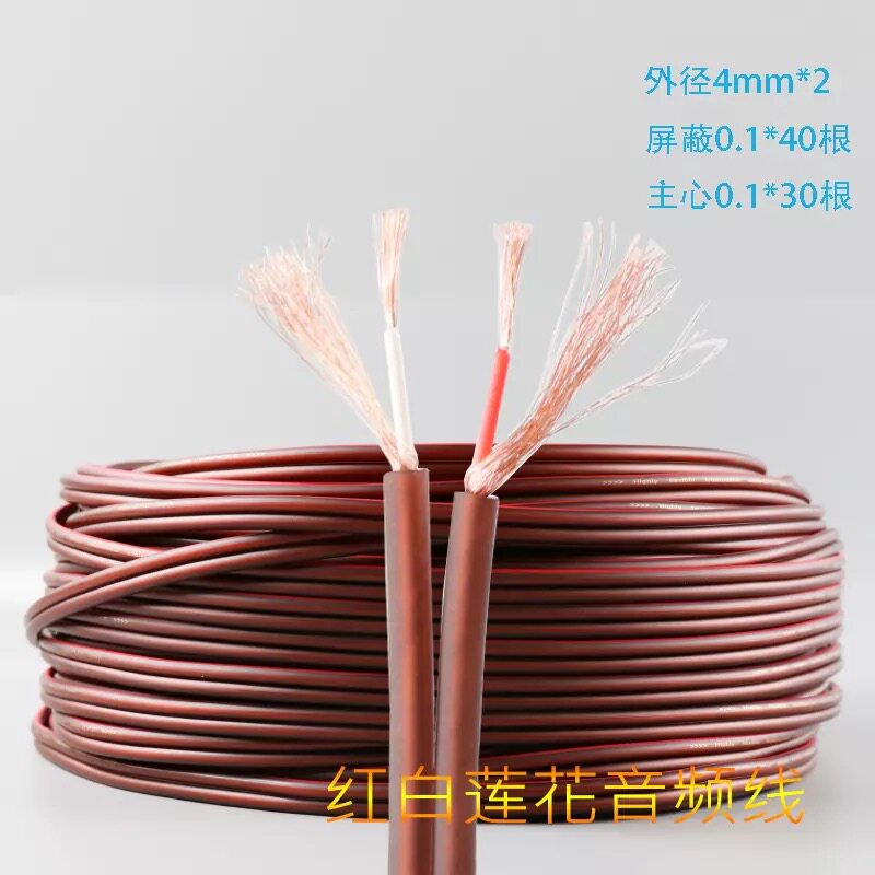 Audio Wire Pure Copper Core 2RCA Red White Lotus Audio-visual Line Stereo Shield AV Wire Speaker Audio Wire Double Row