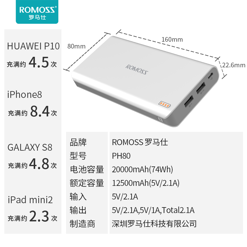 Romance 20000 mA mobile charging Romance portable large capacity super large amount sense6 fast charging mobile power 7,000 cat original suitable for Hermes