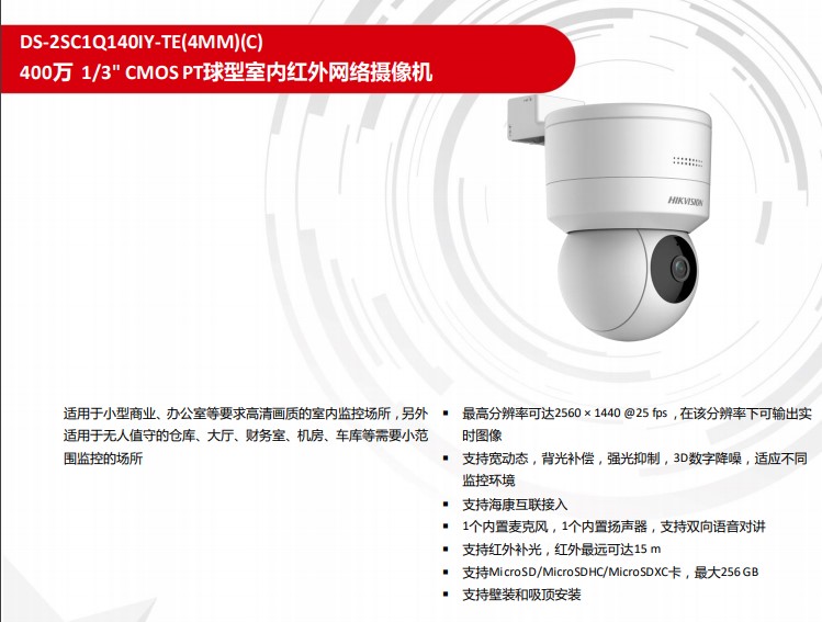 Hikvision DS-2SC1Q140IY-TE two-way intercom PTZ POE4 million pixel infrared network ball machine