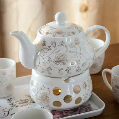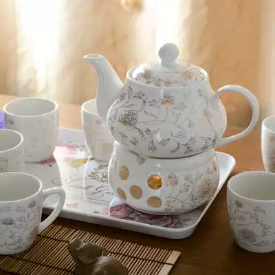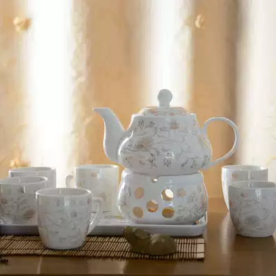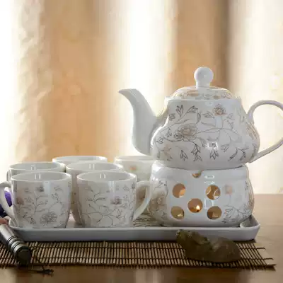 Household teapot tea cup set ceramic tea set Simple 6 cups retro 4 people Kung Fu flower tea tea shell pot set