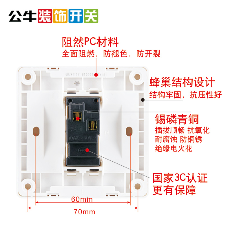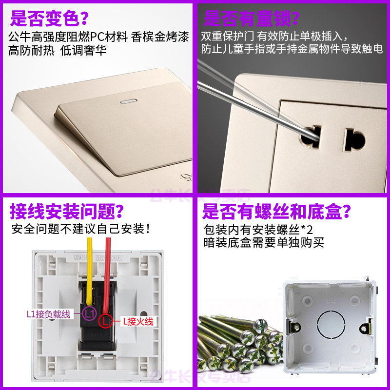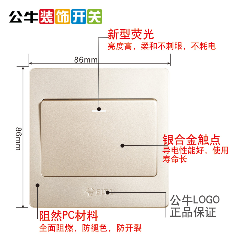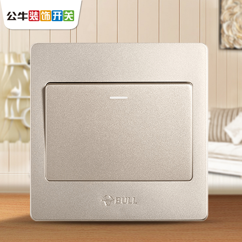 Bull switch socket power supply 86 type wall decoration concealed household 1 one open single control switch panel champagne gold