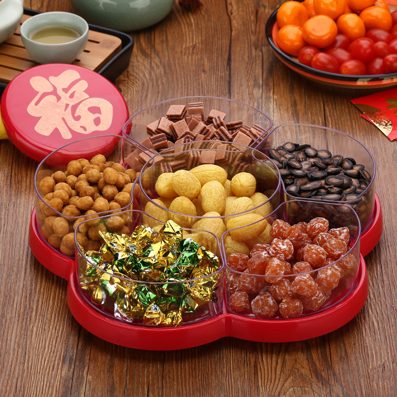 Creative candy box wedding dried fruit box home dried fruit plate combination compartment with lid living room rotating snack candy plate