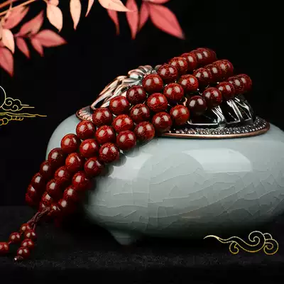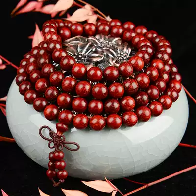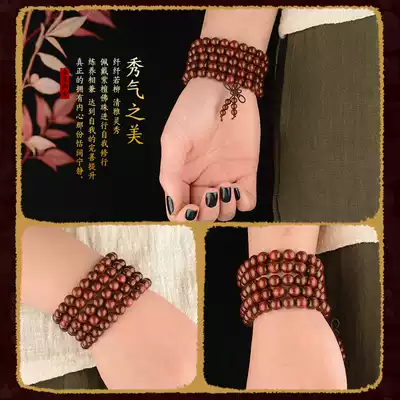Jinghu Indian small leaf red sandalwood hand Gold Gold red sandalwood old hand string 108 beads 2 0 men and women