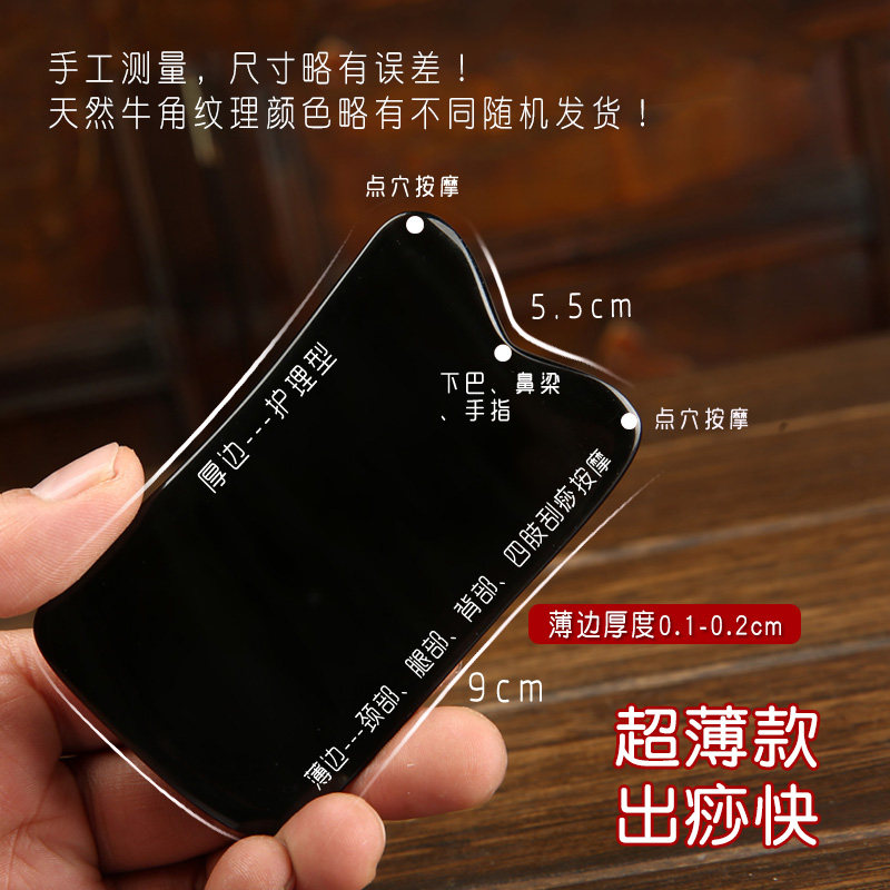 Natural black ox horn scraping board, face lifting, scraping legs, open back, beauty board