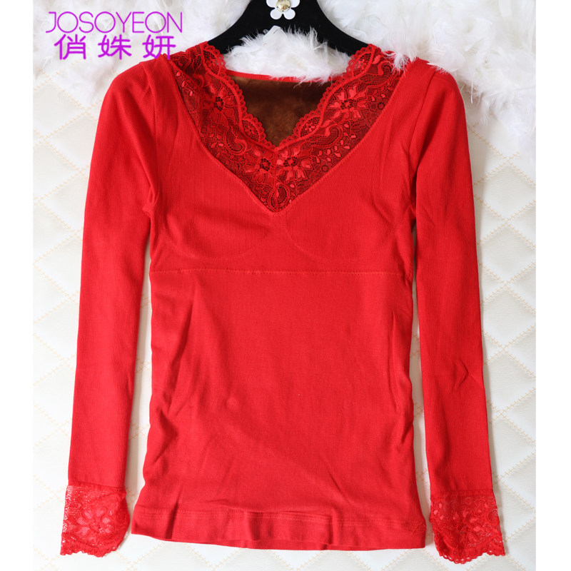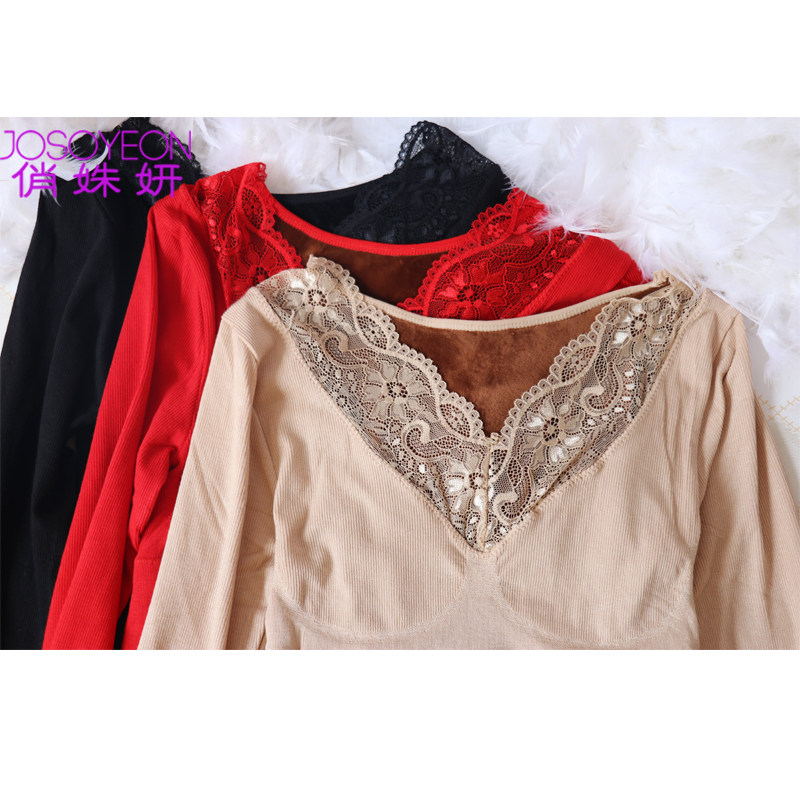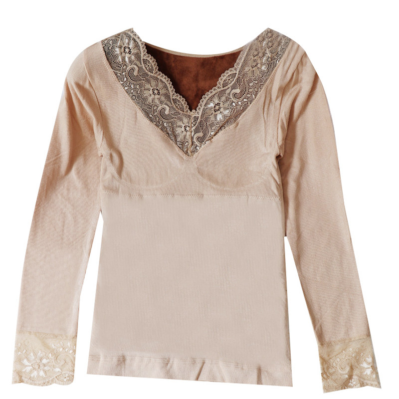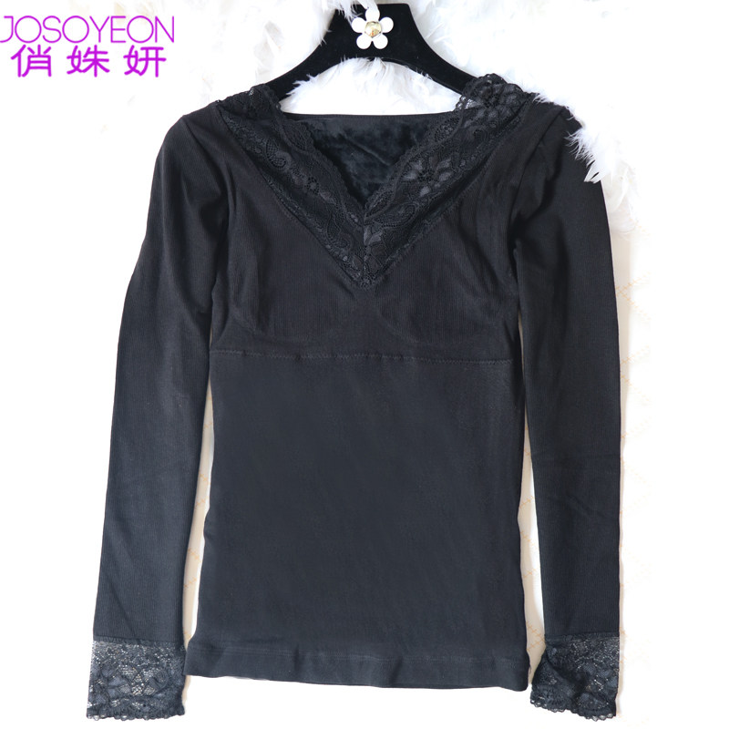Lace warm autumn clothes women's thickening and velvet winter body sculpting body underwear large size chest support bottoming tight cotton top