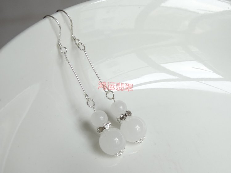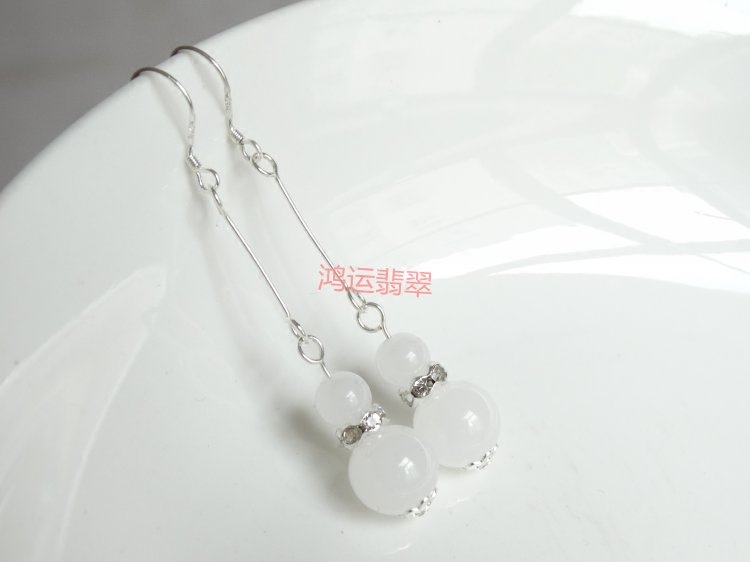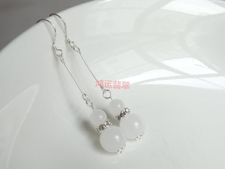 Natural Xinjiang White Jade Strokes 100 Caixgourd jade pendant white jade earrings transport jade pendant 925 silver hook