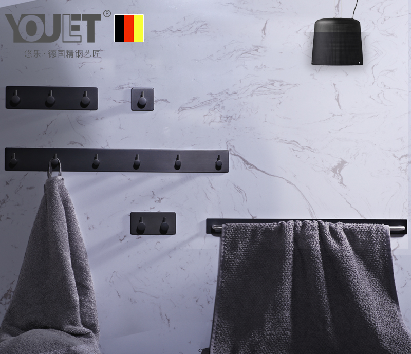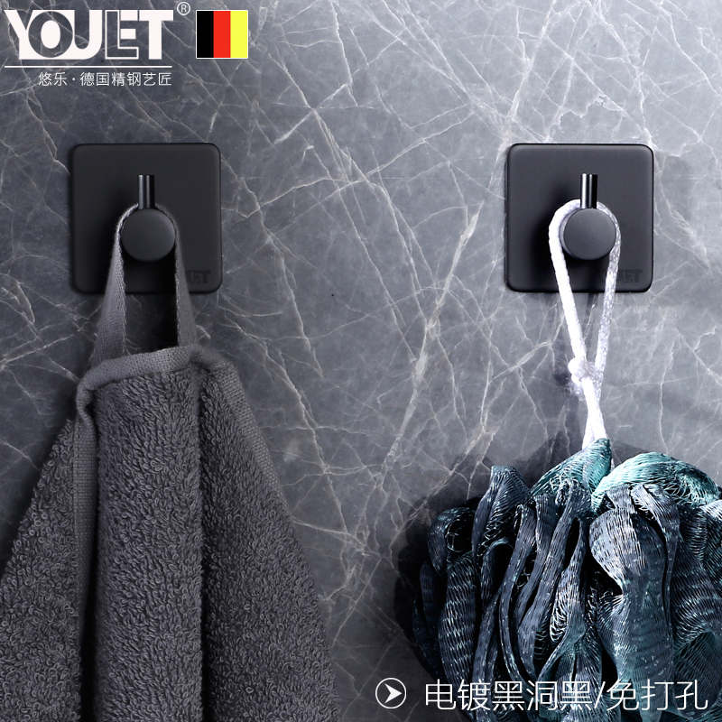 Germany YOULET stainless steel hook hook hook bathroom powder room door back light luxury hook coat black hook