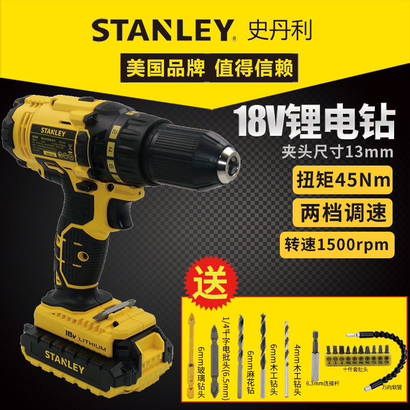 Stanley 18V Lithium Electric Drill Electric Drill Charging Drill Electric Drill Home Multifunction Electric Screw Driver Electric Screwdrivers