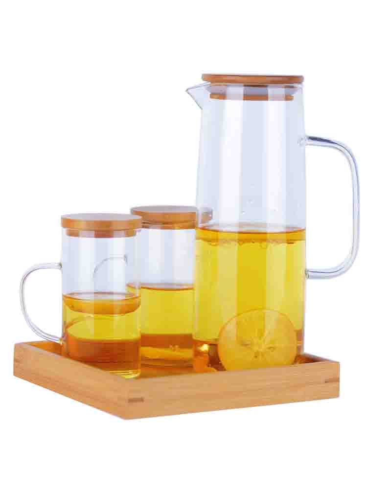 Bamboo Lid Cold Kettle Package Glass Cover With Cold Water Kettle Package