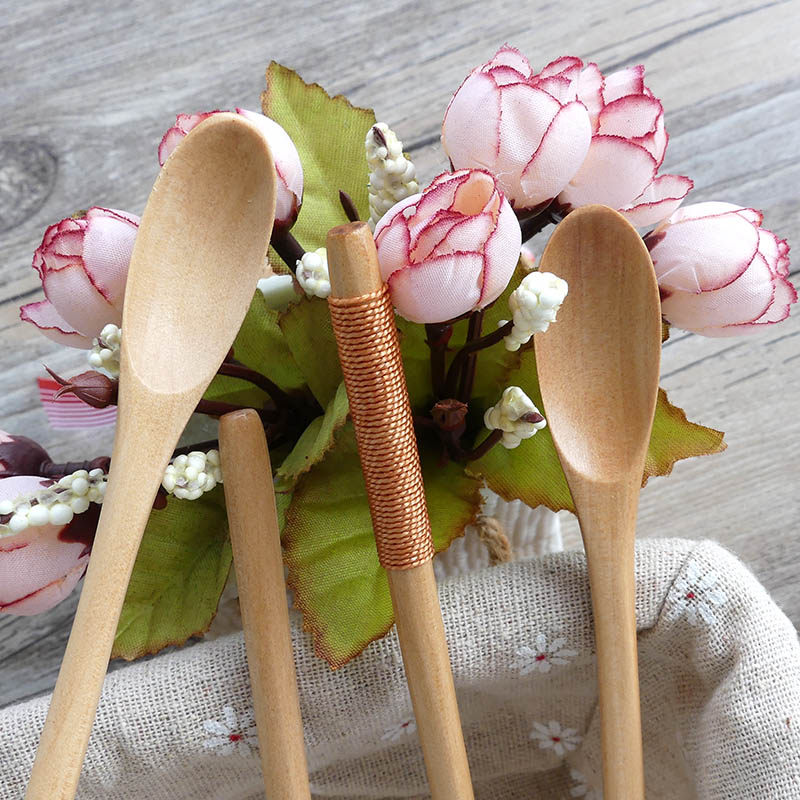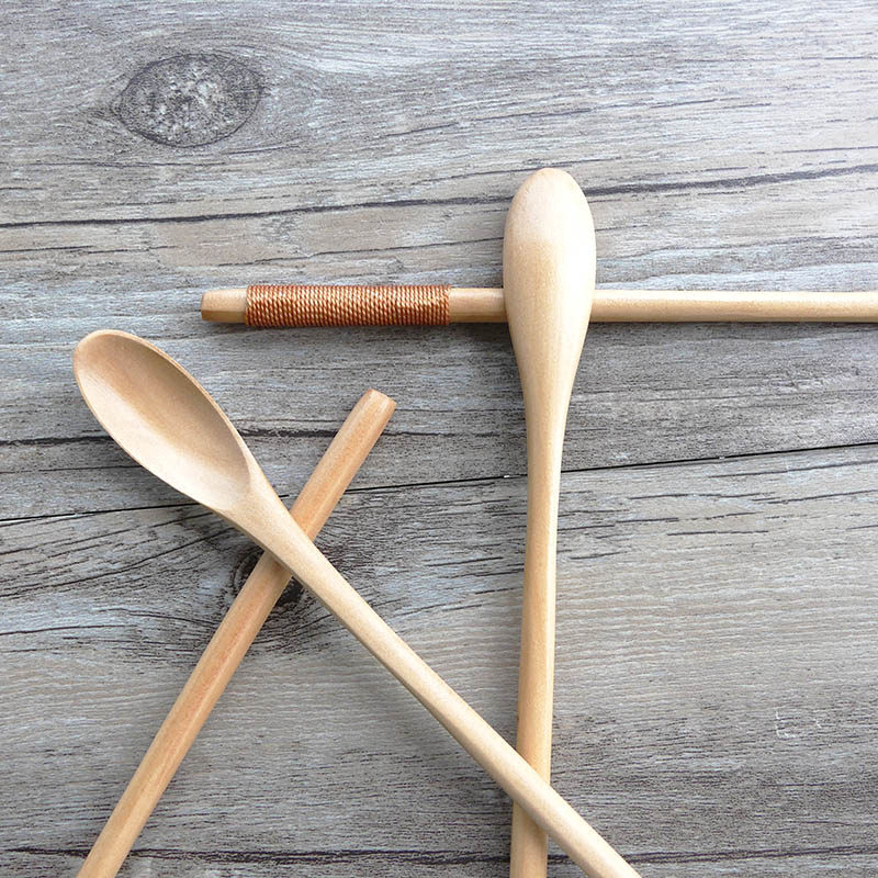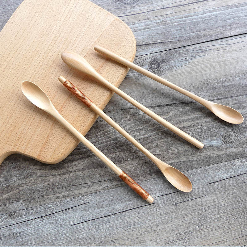 Round handle solid wood small mouth spoon creative coffee mixing spoon cold drink long handle spoon natural log natural color tableware
