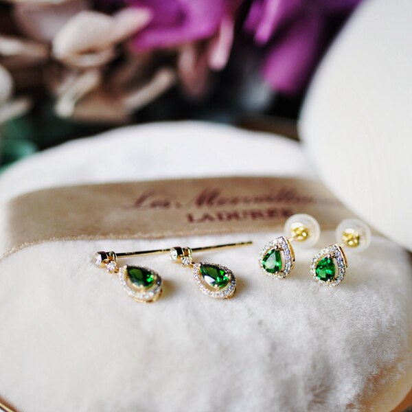 "Wei Jia" Chen Lu natural emerald green sand flock diamond set 18k gold drop ear needle ear ornaments