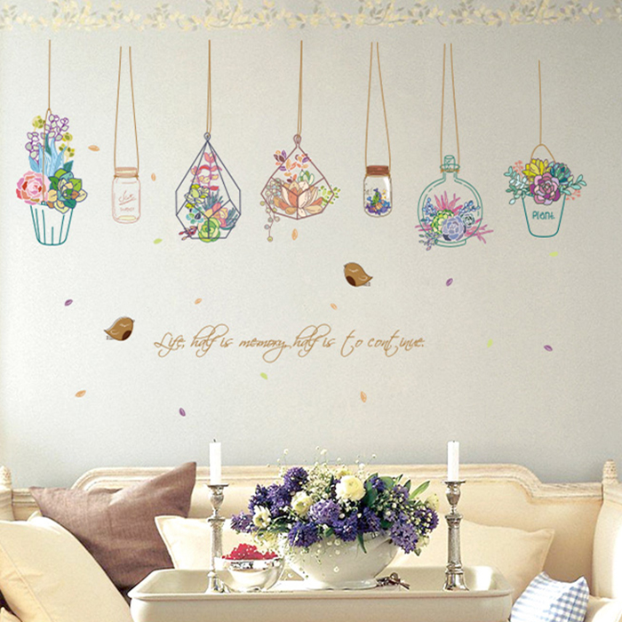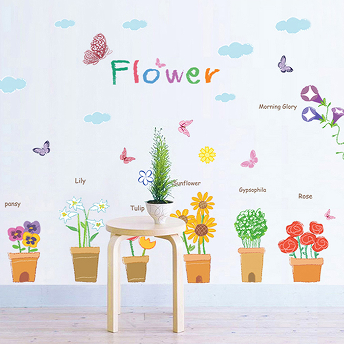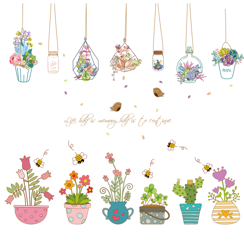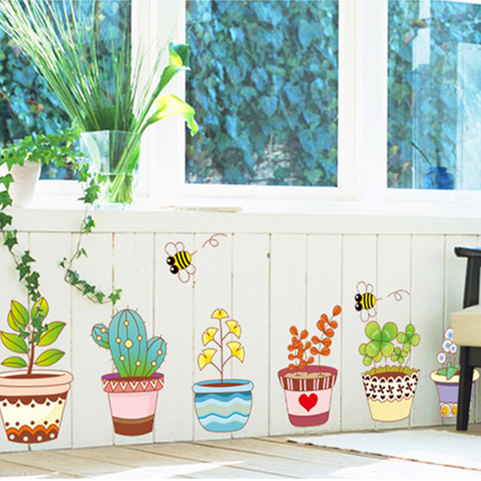 Removable colorful little potted wall stickers freshener home bedroom Xuanguan Lou Dao Decoration Sticker Window Glass Sticker