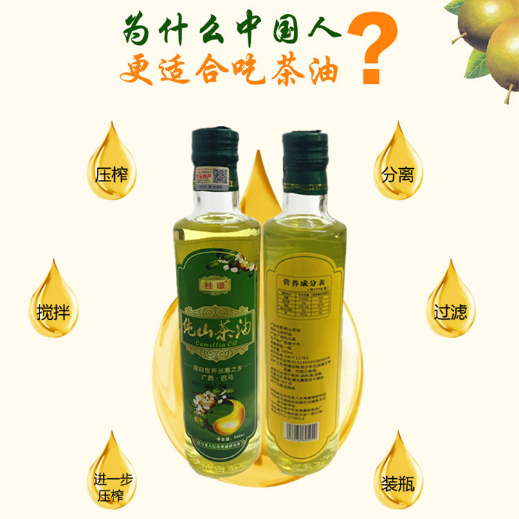 Gui Jing Guangxi Bama Mountain Camellia oil Alpine tea seed oil first-grade pressed edible oil 500ml glass bottle