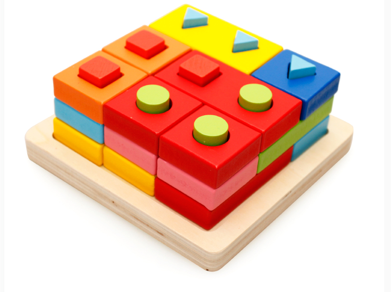 Early education teaching aids Wooden building blocks Puzzle puzzle Geometric shape Cognitive matching Children's puzzle 1 to 5 years old