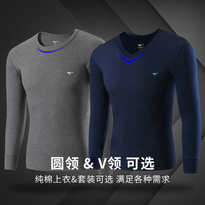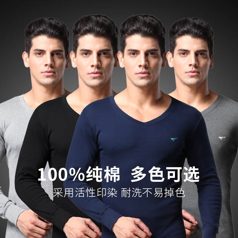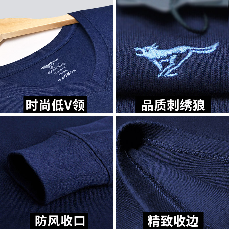 Septwolves Pure Cotton Sweater Longwear One-piece Top Wearing Underwear Men's Warm Thin Section Low Collar Upper Body V-Neck Suit