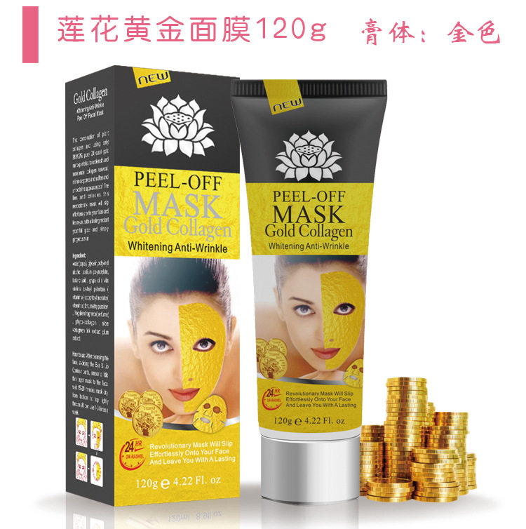Enchanel Outlet Foreign Trade Beauty Gold Collagen Lotus One Suction White Ripping Mask T Zone Clear Black Head 120g