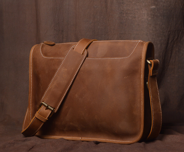 Handmade original retro top layer cowhide men's bag casual crazy horse leather shoulder bag simple leather messenger bag