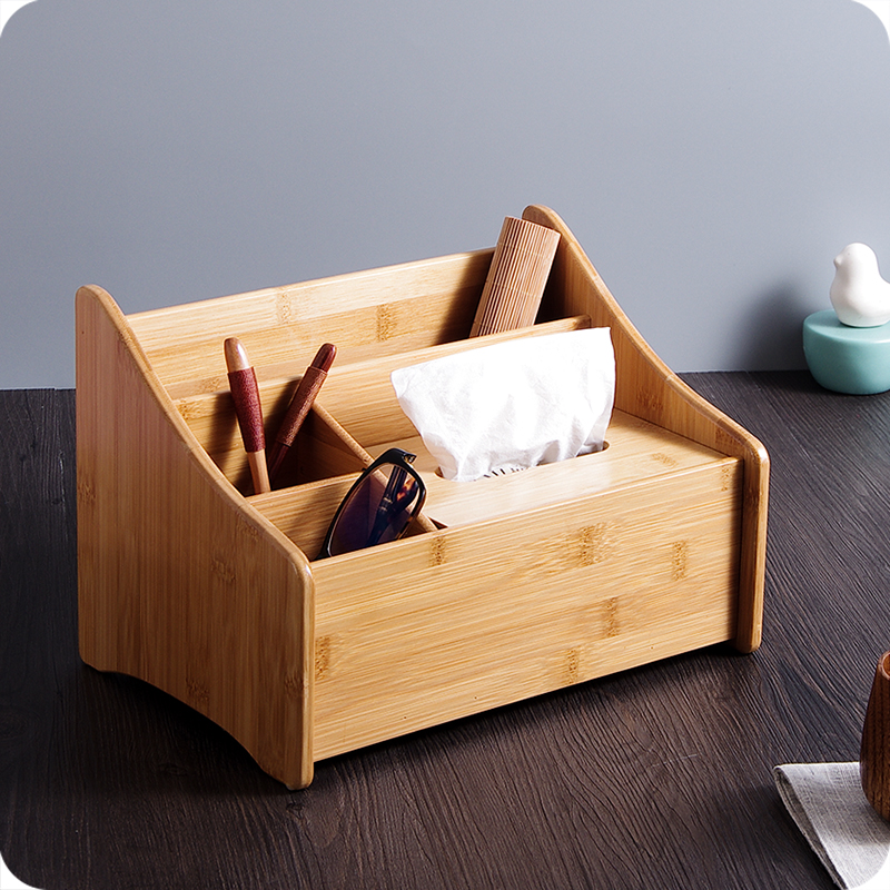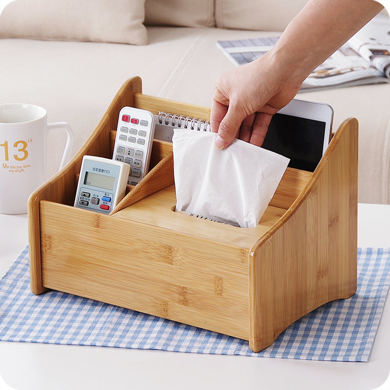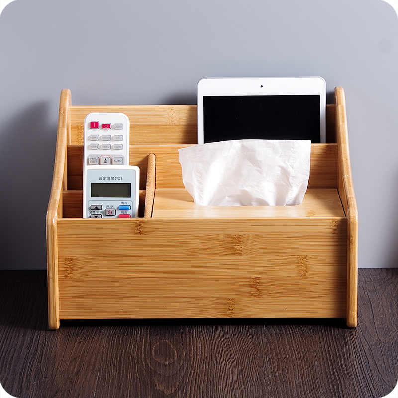 Bamboo desktop remote control storage box Living room coffee table Tissue box Sundries box Multi-functional cosmetic finishing box