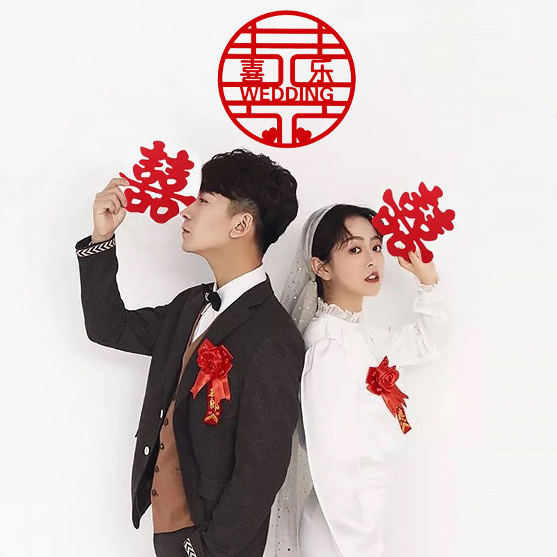Wedding Supplies Great Joy Words Wedding Door Post Wedding Celebration Items Big full community door Stereo Double Hebridal Wedding House Decoration