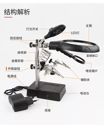 Desktop welding magnifying glass with lamp auxiliary fixture with soldering iron holder welding magnifying glass worktable lamp